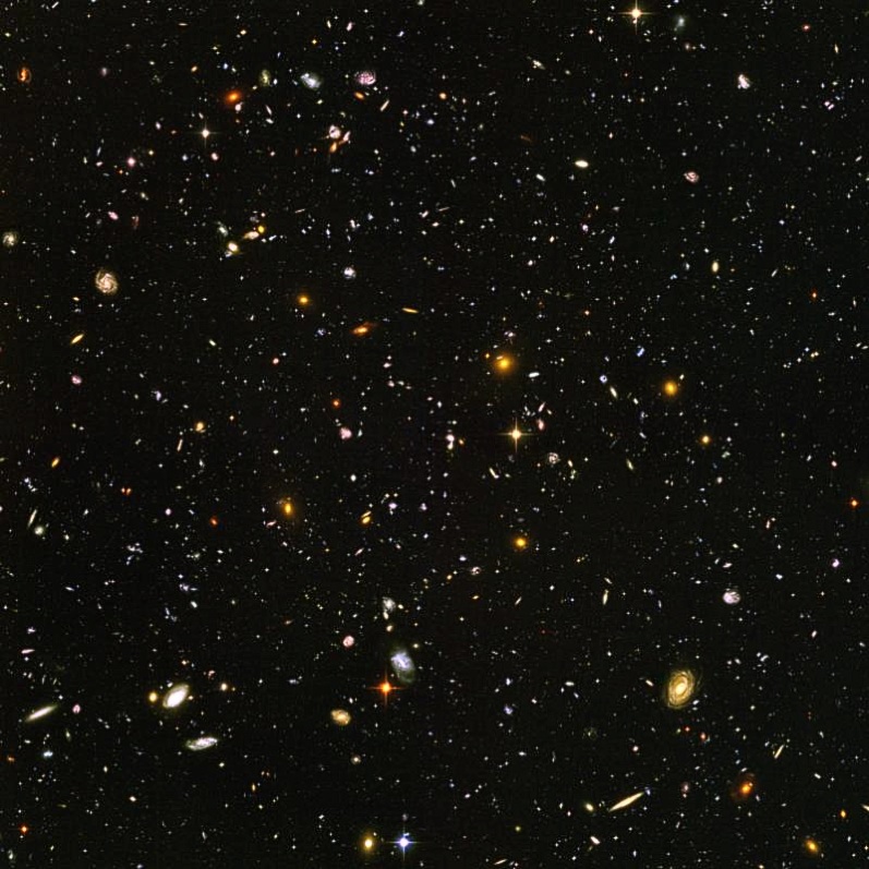 This image was created by picking one of the darkest regions of the sky in which almost nothing could be seen; a patch of black. Using the Hubble space telescope they took multiple exposures over many nights to peer into that one blank spot, just 1/12,700,000th of the observable sky, to see what was there.